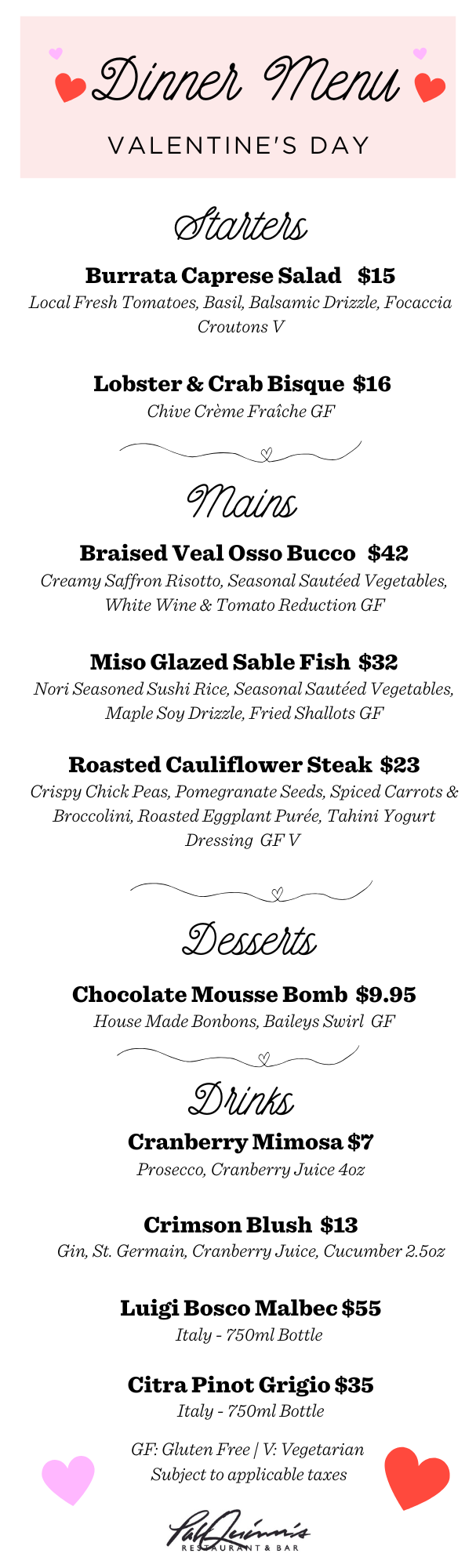 Join us for Valentine's Day February 13th & 14th!